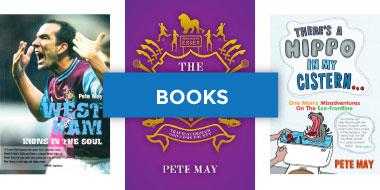Pete May is the author of many successful books including Massive: The Miracle of Prague, Summit for the Weekend, What Are Words Worth?, Man About Tarn, Goodbye to Boleyn, Whovian Dad, The Joy of Essex, There’s A Hippo In My Cistern, Hammers in the Heart, West Ham: Irons in the Soul, Sunday Muddy Sunday and Rent Boy: How One Man spent 20 Years Falling off The Property Ladder. He has written for the Guardian, the Observer, the Independent, The Author, New Statesman, Loaded, | Midweek, Time Out and numerous other publications. Pete was an associate lecturer in sports journalism at the London College of Communication for 12 years. Once an Essex Man, he now lives in London with his wife, two daughters, a dog named Vulcan and a large collection of West Ham programmes and Doctor Who dvds.